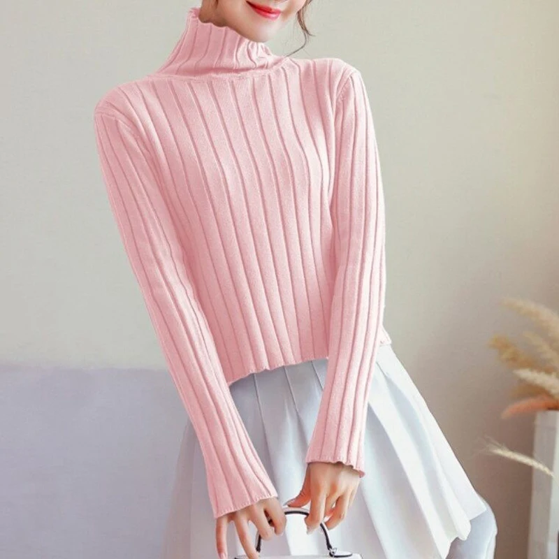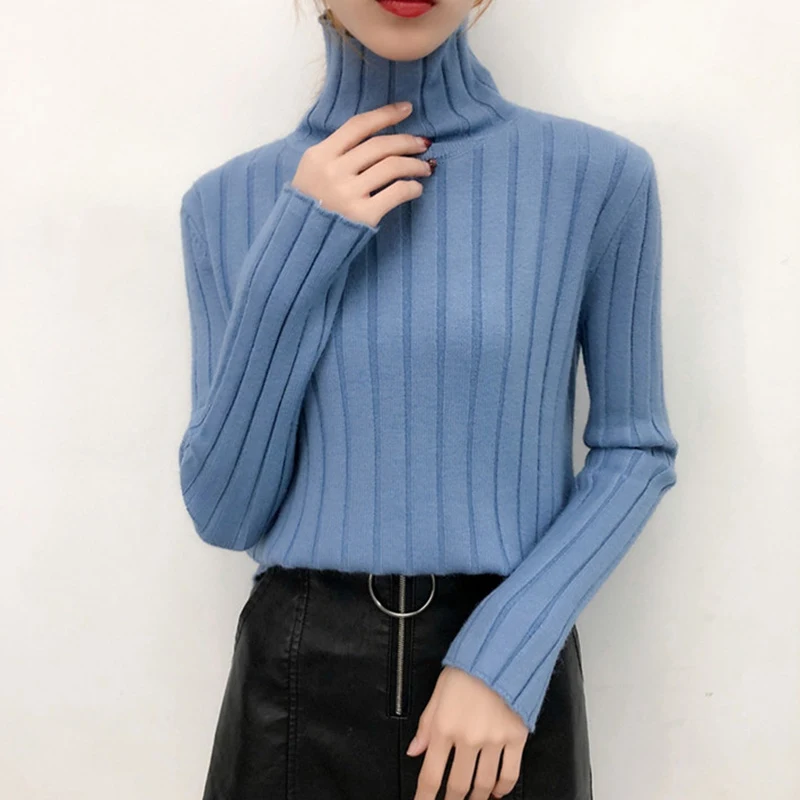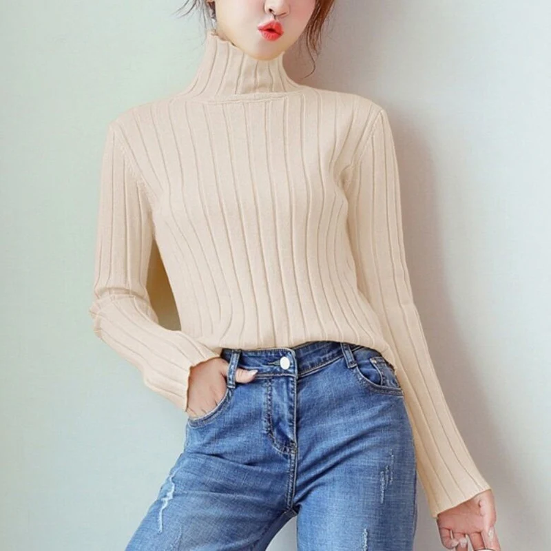 Affordable Herfst Winter Vrouwen Truien Fashion Coltrui Effen Kleur Hoge Kraag Breien Top Lange Mouwen Casual