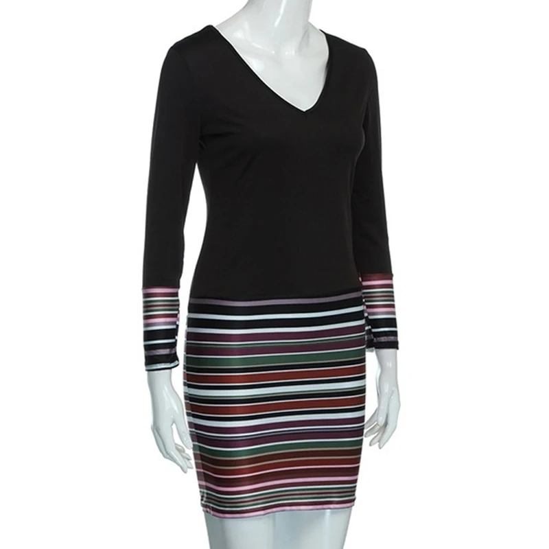 Great buy Long Sleeve Patchwork Striped Dress Women Sexy Slim Party Dress Streetwear Office Stripe Casual Min