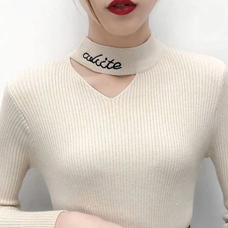 Sale Herfst Winter Vrouwen Truien Trui Koreaanse Brief Borduurwerk Casual Jumper Mode Slanke Coltrui Geb