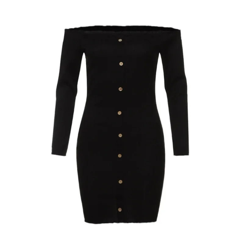 Deals New Women Button Slim Long Sleeve Off Shoulder Cocktail Party Club Bodycon Mini Dress hot sale