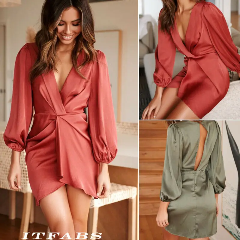 Clearance Women Dress Tunic Slim Long Casual Fashion Long Sleeve V neck Sexy Party Dress Summer Mini Dresses